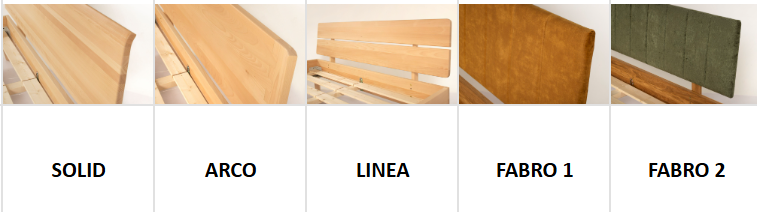 Mattress size (cm) | Width (cm) | Length (cm) | Frame height (cm) | Frame height from the floor (cm) | Maximum headboard height (cm) | Minimum headboard height (cm) | Material: oak, long slat (cm) |